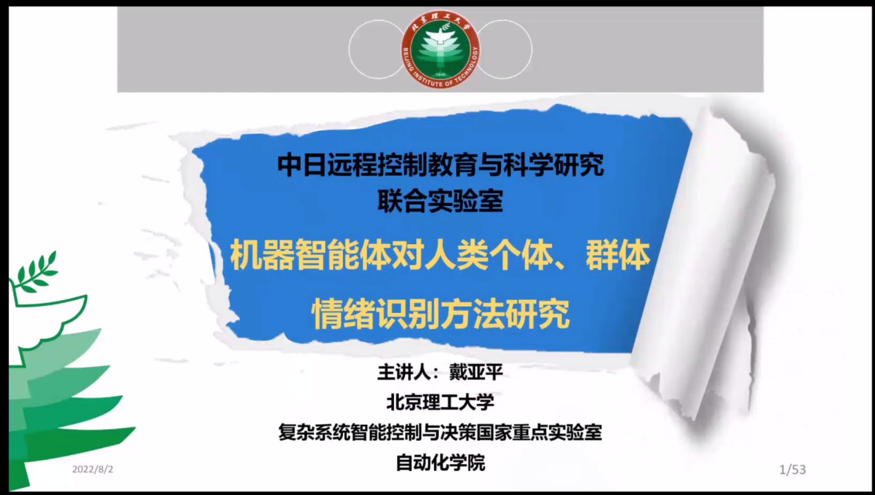 北京理工大学戴亚平教授做了 “机器智能体对人类个体、群体情绪识别方法研究”的报告。随着时代发展,服务机器人将成为人类社会的重要组成部分,特别是服务型的机器智能体,会作为人类重要的协作伙伴而分布在家庭与工作场所中。如何让机器智能体能够认识人类、了解人类,是一个富有挑战性的科研课题。在机器人上搭载的摄像头、声音传感器可以作为机器智能体的“眼睛”、“耳朵”,获取人的面部表情、肢体行为、声音等的图片、音视频信息。报告探讨如何依据人脸表情识别算法、人的行为识别算法、语音声调识别算法等,建立起针对人类个体的情感模型,进一步建立人类群体的情感氛围模型。未来可以将这些模型植入到机器智能体的“机器脑”之中,使得机器智能体对人类情感方面获得更加多元的认知,以期机器智能体能够拥有更加符合人类社会需要的“智能”。