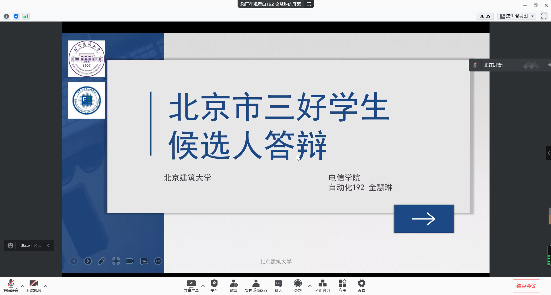 会议第二项,11位候选人进行轮流答辩,答辩后评委老师进行提问。每一位候选人进行了精彩的答辩。