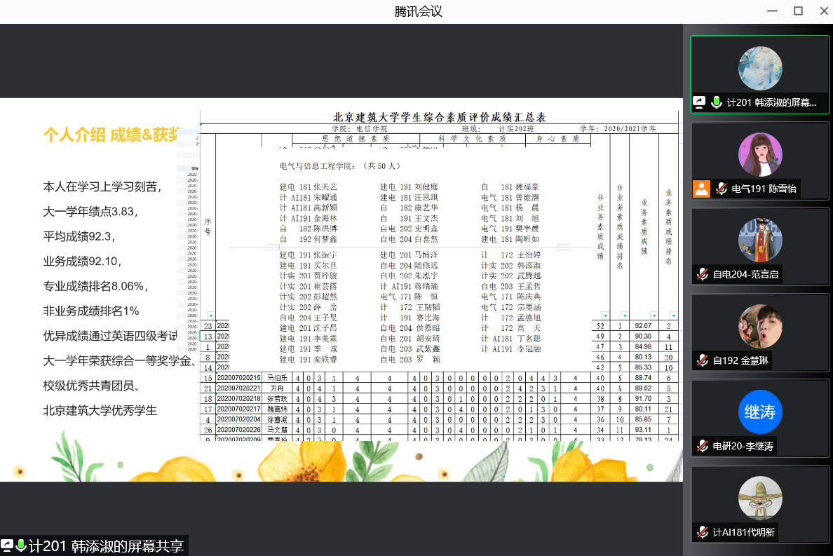 为深入学习贯彻习近平新时代中国特色社会主义思想,培养德智体美劳全面发展的社会主义建设者和接班人,引导新时代首都青年学生健康成长成才,电信欧博娱乐城 团委按照相关通知要求,积极组织此次三好学生评选工作,为做到公平公正公开,10月17日下午15:00,在腾讯会议举办线上评选答辩会。