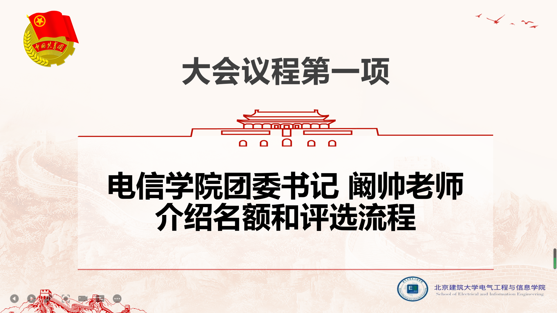 会议第一项,团委书记阚帅老师介绍了院名额分配及评选流程,并对所有的候选人进行鼓励。