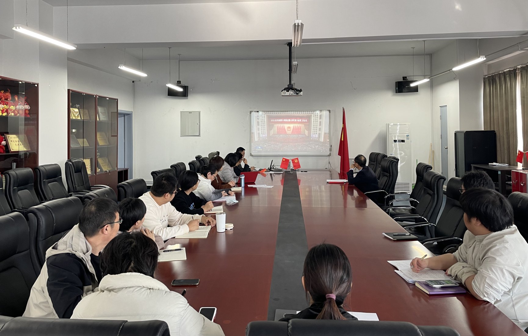 会议第一议题,大家集体收看了十四届全国人大二次会议在北京人民大会堂举行闭幕会的新闻报道,中共中央总书记、国家主席、中央军委主席习近平等党和国家领导人出席闭幕会。