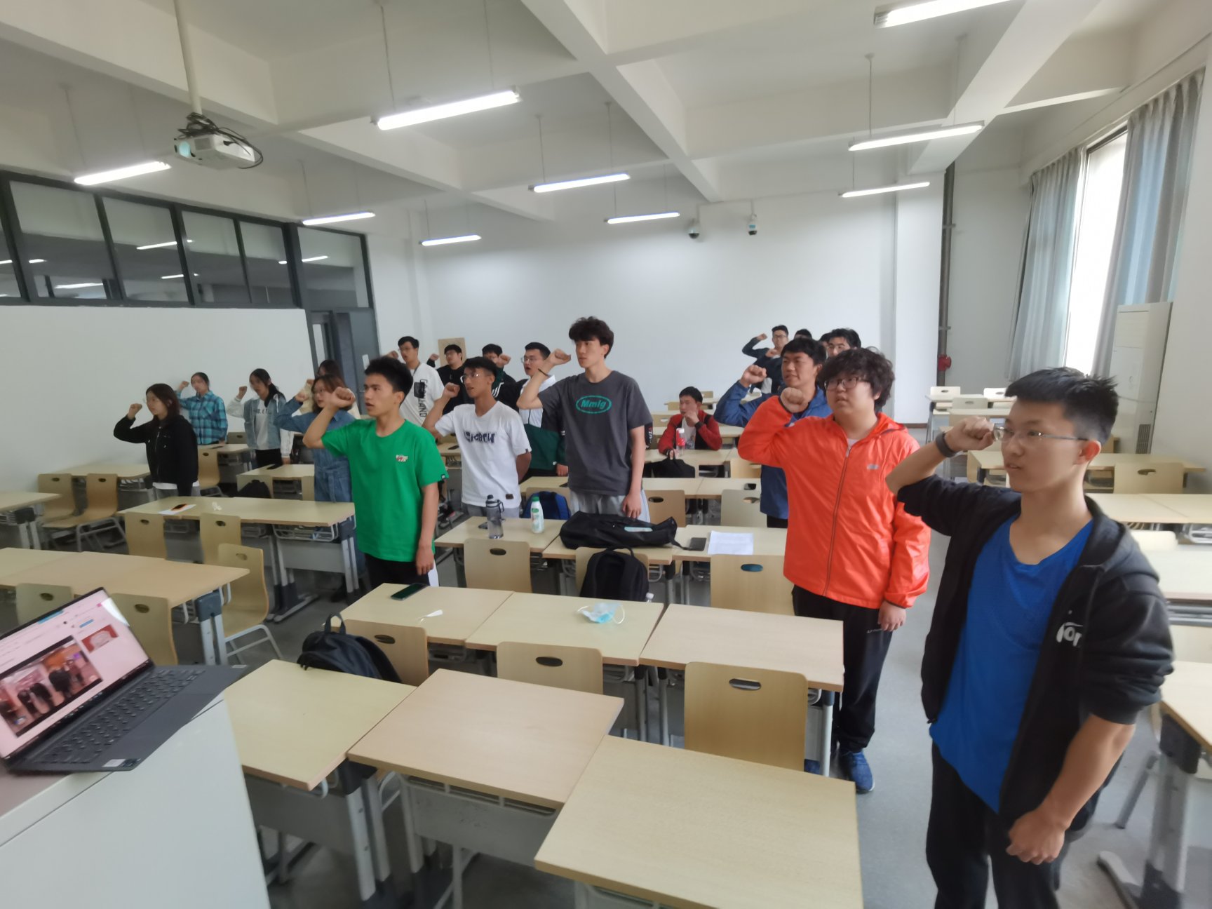 自电203班在观看完习近平总书记对清华大学考察的片段后,学生代表纷纷发言,随后由班委宋明谦同学带领发出倡议:青年者,人生之王,人生之春,人生之华也。青年当有上青天、揽明月的逸志,也应有挥之方遒,指点江山的意气,更该有饮冰十年,难凉热血的毅力。立身百行,以学为基,提升自身的素质与修养,成为担当民族复兴大任的时代传人。