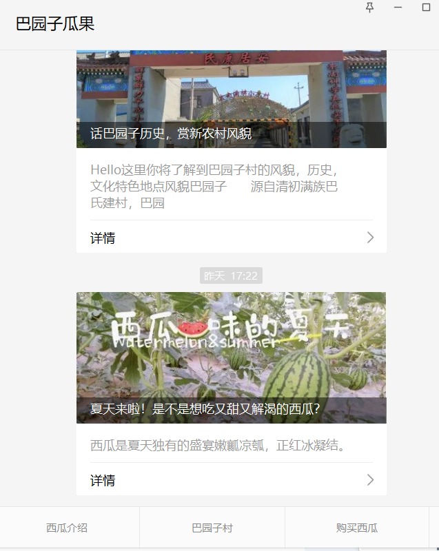 此次调研后,历经一个月的时间,由计算机专业师生党支部联合开发的“巴园子瓜果”公众号正式上线,目前主要是帮扶巴园子村的西瓜销售,为农户拓展销售渠道,打开更大的市场。