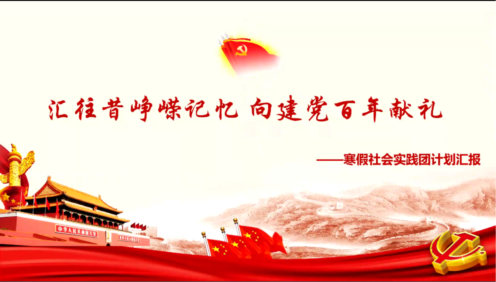 霍腾宇同学向大家介绍了“汇往昔峥嵘记忆,向建党百年献礼”实践团——该实践团由欧博娱乐城 团委书记阚帅老师指导,共有15名成员。在2021年建党一百周年之际,结合学校寒假 “五个一”活动要求设立“汇往昔峥嵘记忆 向建党百年献礼”暑期实践项目。