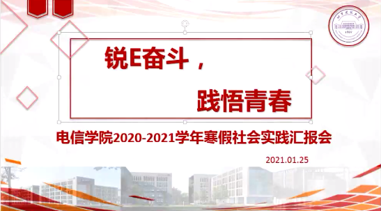 1月25日,电信欧博娱乐城 寒假社会实践立项和进度汇报答辩会在线上顺利举行,欧博娱乐城 副院长马鸿雁、党委副书记田芳、团委书记阚帅和所有实践团成员参加本次启动会,开幕式由阚帅老师主持。开幕式围绕社会实践立项情况、各团队进度、实践指导等方面进行。
