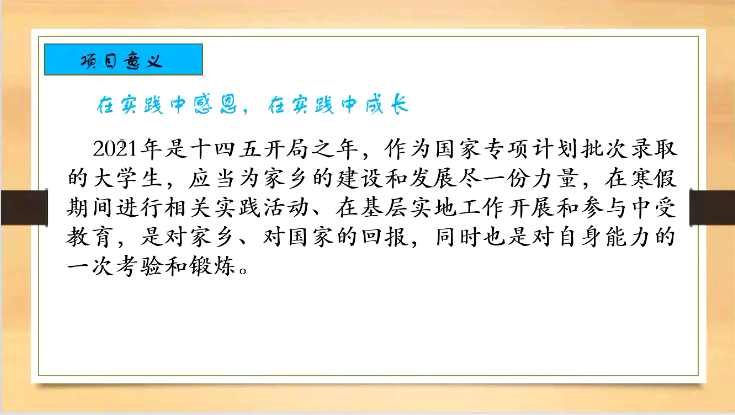 “锐E奋斗,践悟青春”主题寒假社会实践,采取“属地实践、远程协同、线上线下共同联动”的形式开展,本次实践活动共有四个主题:巩固脱贫攻 坚,心系家乡建设;记录改革变化,助力家乡发展;深入基层探访,把握社会动向;主动服务社区,强化社会责任。此次实践活动包立项6支团队,除了包含欧博娱乐城