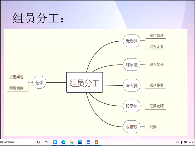 武腾越同学向大家介绍了“ENQ;CR/社会各层人士对计算机行业的要求”实践团——由5名2020级计算机专业学生组成,通过资料整理、联系企业、采访老师和优秀学长的形式,从多种角度了解计算机行业所需要的素养与要求。