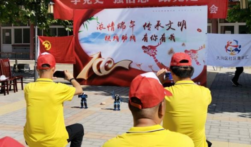 活动第一环节,北京建筑大学电信欧博娱乐城 带来舞蹈机器人展示与诗歌朗诵,学生党员何建林讲述微党课,让我们对国家的崛起历程感到肃然起敬;长子营镇残疾人联合会带来具有中国特色的舞龙表演;北京汽车技师欧博娱乐城 展示红色歌曲演唱,各团队以不同的形式与特色展现了建党百年的风华与成就。