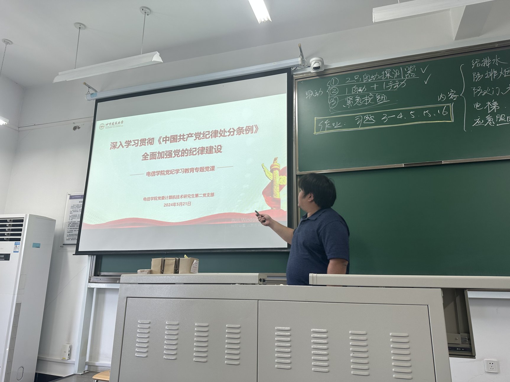 5月21日,计算机技术研究生第二党支部开展“支部书记讲党课——学习《中国共产党纪律处分条例》”理论学习活动。