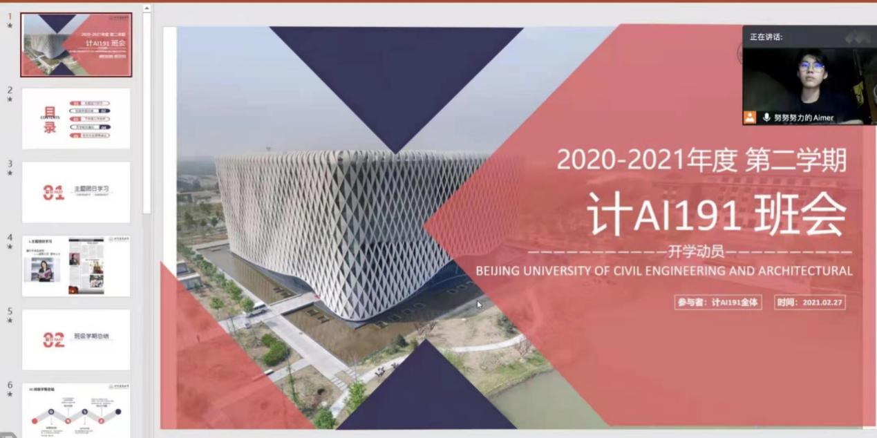 为深入学习领会习近平新时代中国特色社会主义思想和党的十九届五中全会精神,深入贯彻落实蔡奇同志到学校调研时的指示精神,全面贯彻上级及学校关于新学期各项部署要求,北京建筑大学电信欧博娱乐城 于2月26-28日面向大一到大四28个班级以及研究生3个年级,组织召开春季学期线上主题班会,多层次、全方位、全覆盖上好 “开学第一课”。欧博娱乐城 领导班子成员、学工部领导、全体欧博娱乐城 辅导员、班主任参与了班会。