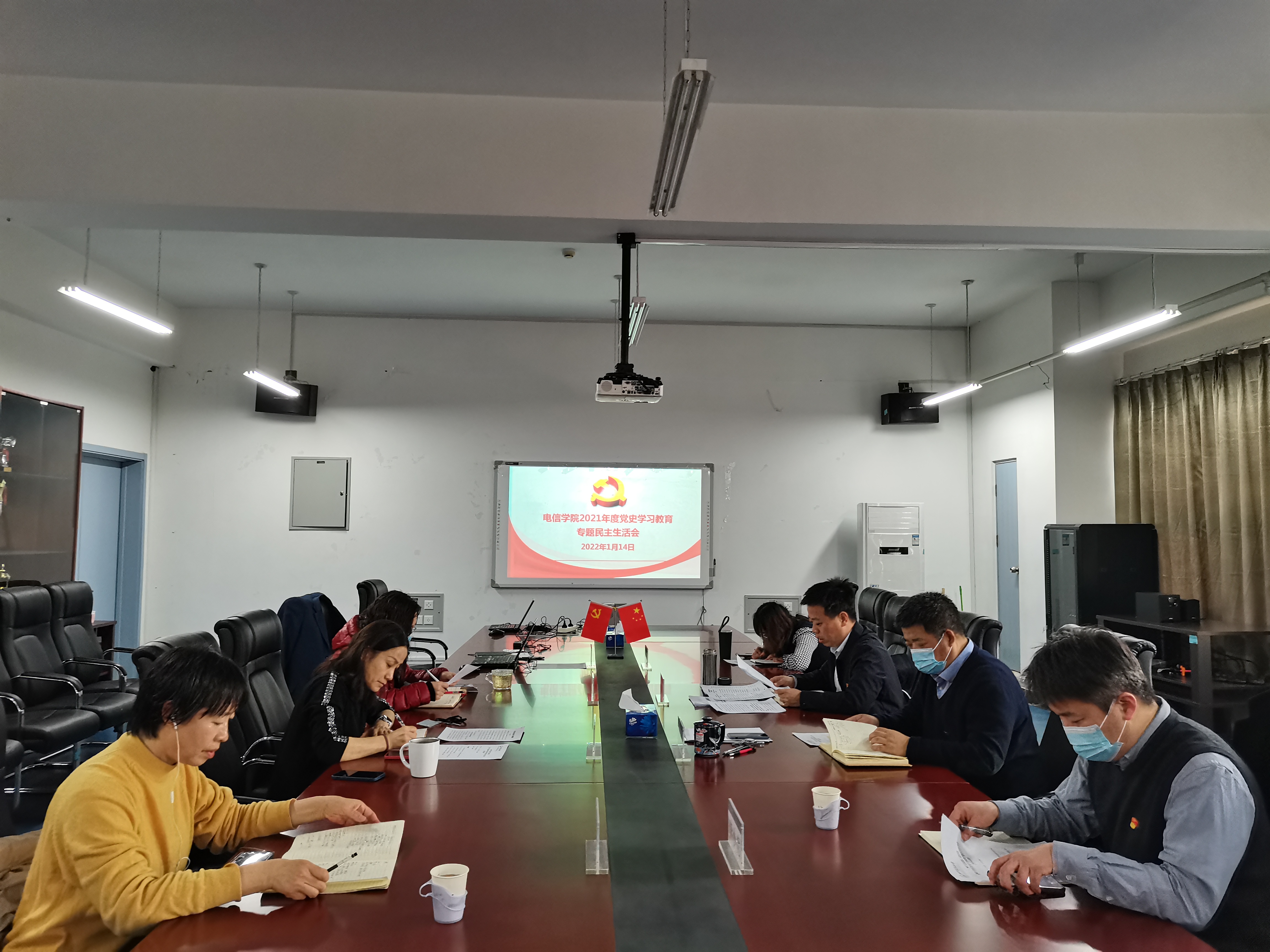 2022年1月14日上午,电信欧博娱乐城 党委在学D542会议室召开党史学习教育专题民主生活会。欧博娱乐城 党委书记吴建国主持会议,第三巡回指导组成员和纪检监察办公室工作人员共同出席会议。