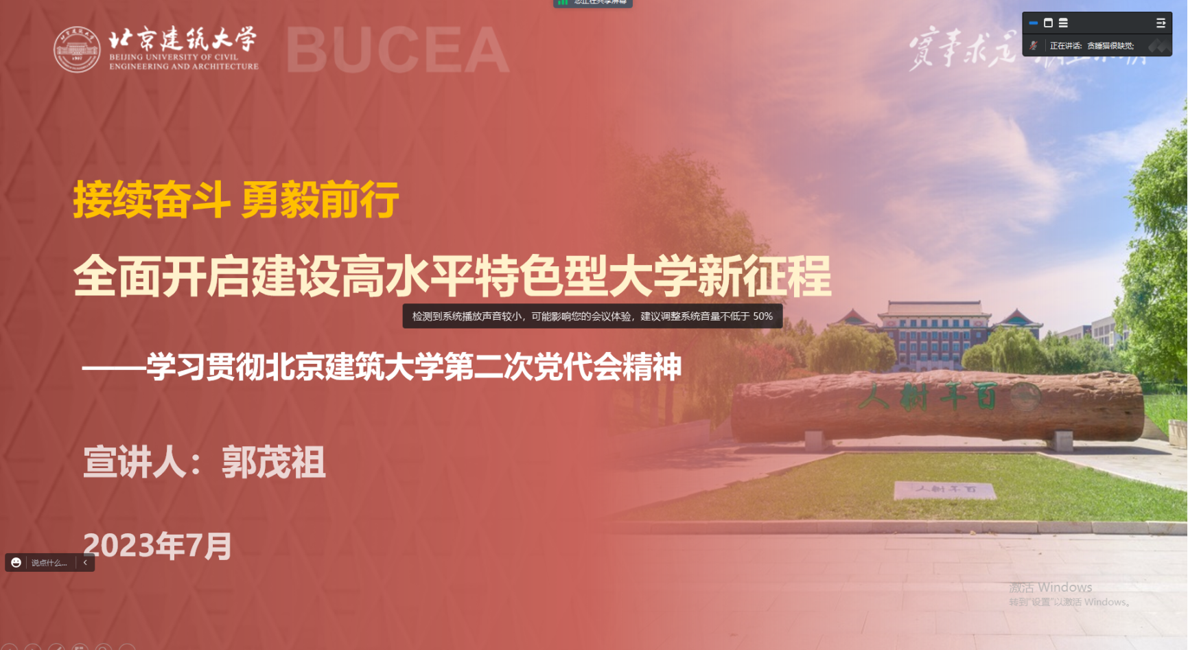 2023年7月4日,电信欧博娱乐城 院长郭茂祖为欧博娱乐城 党员讲授《接续奋斗 勇毅前行 全面开启建设高水平特色型大学新征程》主题党课,全院研究生党员、入党积极分子及部分教师代表近百人参会,党委副书记田芳主持会议。