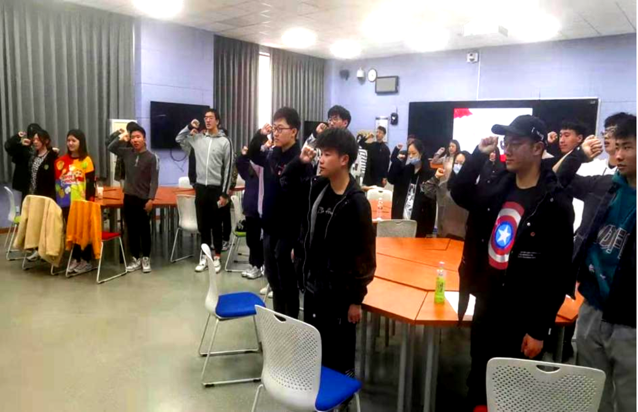 会议末,全体人员面向团旗进行庄严的宣誓:接种新冠疫苗是每一位公民的义务与责任,应接尽接,共筑免疫屏障,共同守护我们的家园!