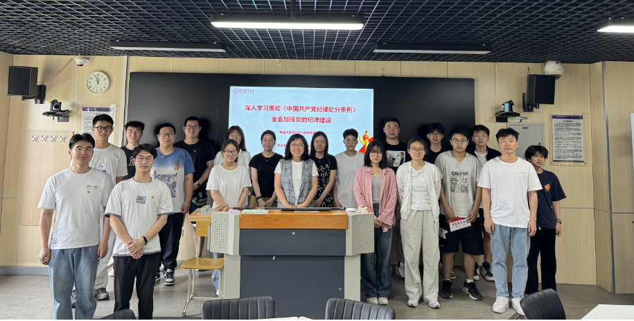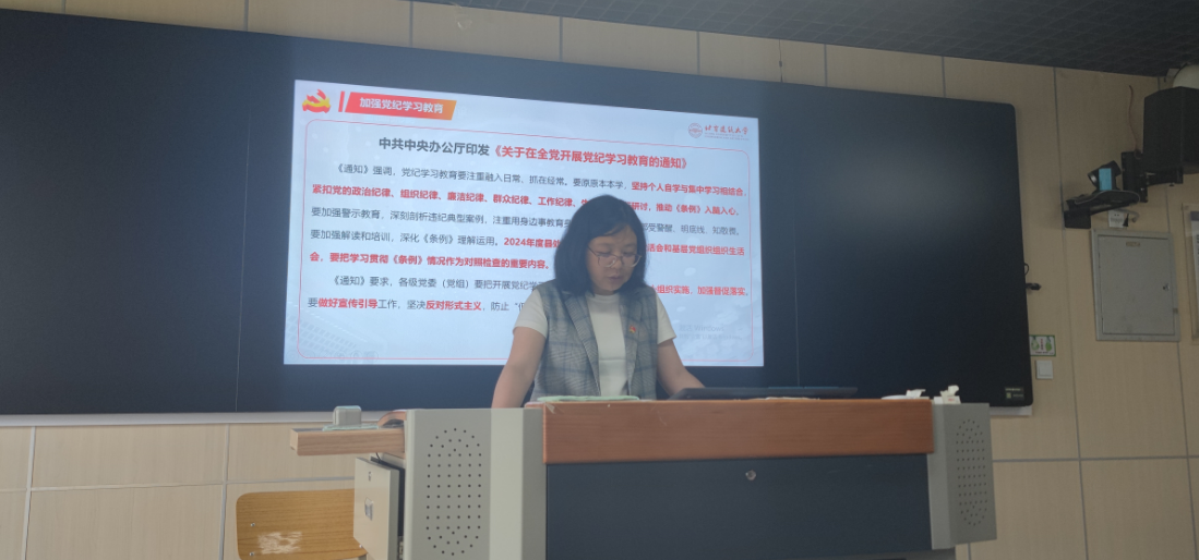 5月9日上午,电信欧博娱乐城 计算机技术研究生第一党支部在欧博娱乐城 楼D座组织开展《中国共产党纪律处分条例》专题党课学习,党支部书记王雪平讲授纪律党课。