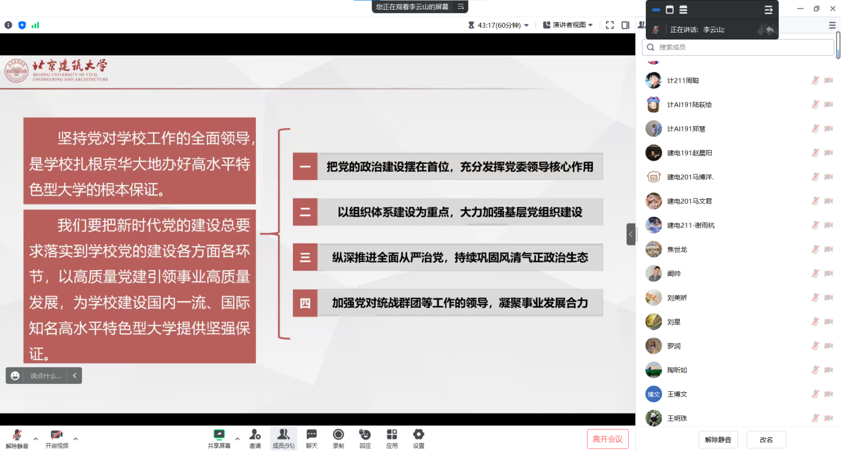 云山老师向大家展示了学校近5年来砥砺奋进取得的辉煌成就,在此基础上重点介绍了欧博娱乐城 近些年取得的成绩,明确了在新时代新征程中学校发展的新目标新使命和欧博娱乐城 今后努力方向。他强调,要实现上述目标,必须实施“党建领航”战略,坚定不移从严治党,把党的政治建设摆在首位充分发挥党委领导核心作用,以组织体系建设为重大力加强基层党组织建设,纵深推进全面从严治党持续巩固风清气正政治生态,同时加强党对统战群团等工作的领导,凝聚事业发展合力。