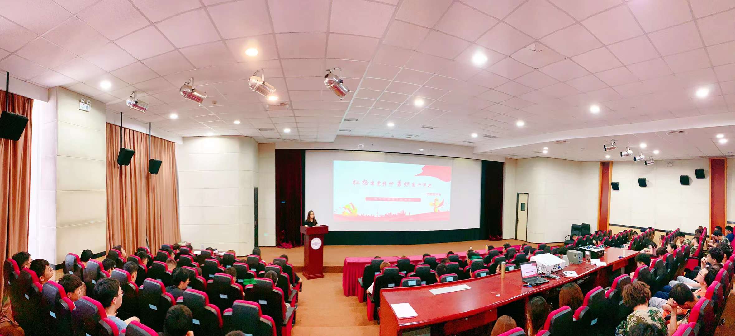 活动第二项,欧博娱乐城 参与建党百年庆祝大会和《伟大征程》文艺演出的各岗位学生代表进行主题宣讲。