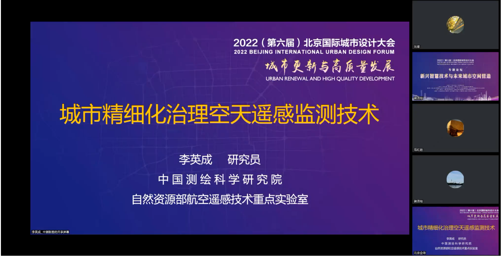 李英成做《城市精细化管理中的空天遥感监测技术》专题报告,指出空天遥感监测技术是国家治理能力现代化建设的新需求,为各级政府提供自然资源、生态环境、应急管理和城市运行提供服务。实现从地块、区域、全国乃至全球范围,地球表面自然资源、国土空间规划与利用、生态等要素的时空数量、质量变化的即时智能感知,服务自然资源监管;实现从城市事件、部件到城市区域的全时空、全要素、质量、数量的动态即时感知,支撑城市智慧化管理、治理、服务与持续发展。