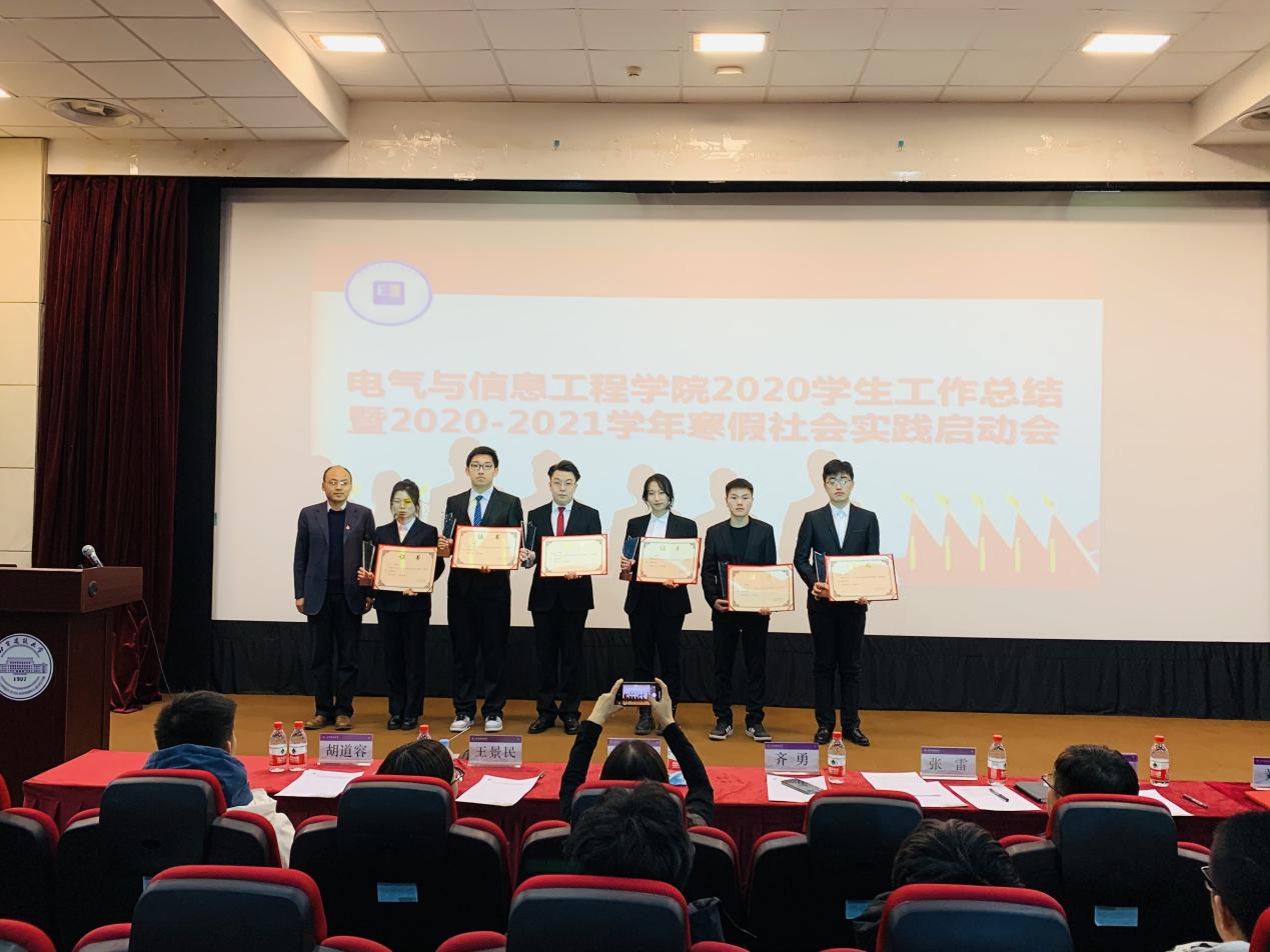 2020年12月15日下午,电气与信息工程欧博娱乐城 2020年学生工作总结暨2020-2021学年寒假社会工作实践启动会于欧博娱乐城 楼D座报告厅举行,校学工部部长齐勇、党委副书记田芳、校团委组织宣传部部长刘倩、院团委书记阚帅、全体辅导员老师以各年级学生骨干近150人参加了本次会议。